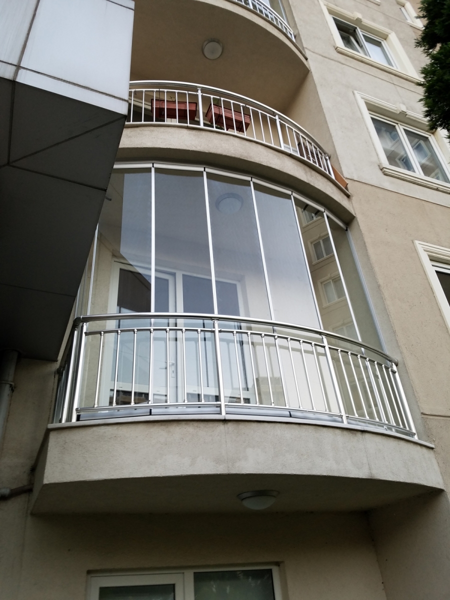 Balkonları evin en kullanışlı yeri haline getiren, yağmura, toza, hatta sineklere bile geçit vermeyen, ev hanımlarının dostu, altında ve üstündeki tekerlekleri sayesinde kayar-katlanır yada sadece sürülür cam balkon sistemi. Balkonlar istenildiği zaman tamamı açılabilir, istenildiği zaman kapatılabilir. Aluminyum profilleri istenilen renklerde boyatılabilir, camlar; şeffaf, füme, yeşil, mavi yada tamamı boyalı olabilir.